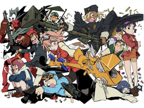 Upon first hearing word of this project via the then-phasing out method of anime pen-palling, I ached to see any available imagery to the follow-up good ol Gainax had in store after the troubled production of Kareshi Kanojo No Jijyo. It was that show’s sudden change in director, and almost schizophrenic series of narrative cul-de-sacs, ending in a slightly hopeful, albeit muddled ending which left me a little concerned for where the recently crowned otakings were headed. How little did I know that as my search for images on a friend’s computer would bore an oddly fitting image, almost perfectly representative of the decade, no strike that, millennium we were in fact leaving behind.