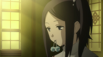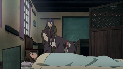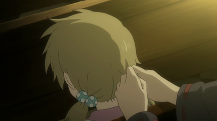 And, this is the scene where the light of grace actualized the most! Mishio-chan, a war orphan, asks Yumina-oneechan to braid her hair with tonbo-dama(dragonfly balls). That scene is overwhelmingly moving and beautiful!