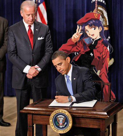 “Today, I believe the President has made great strides in bringing human Americans and Animericans closer together. In more ways than one,” said Animerican activist Ron Nerdageek, head of the Marriage Otaku Equality league. He then held up a picture of his Animerican girlfriend Misato Katsuragi, drawn winking and flashing a victory sign to the camera. “I’m so glad we can finally marry!” her word balloon declared.