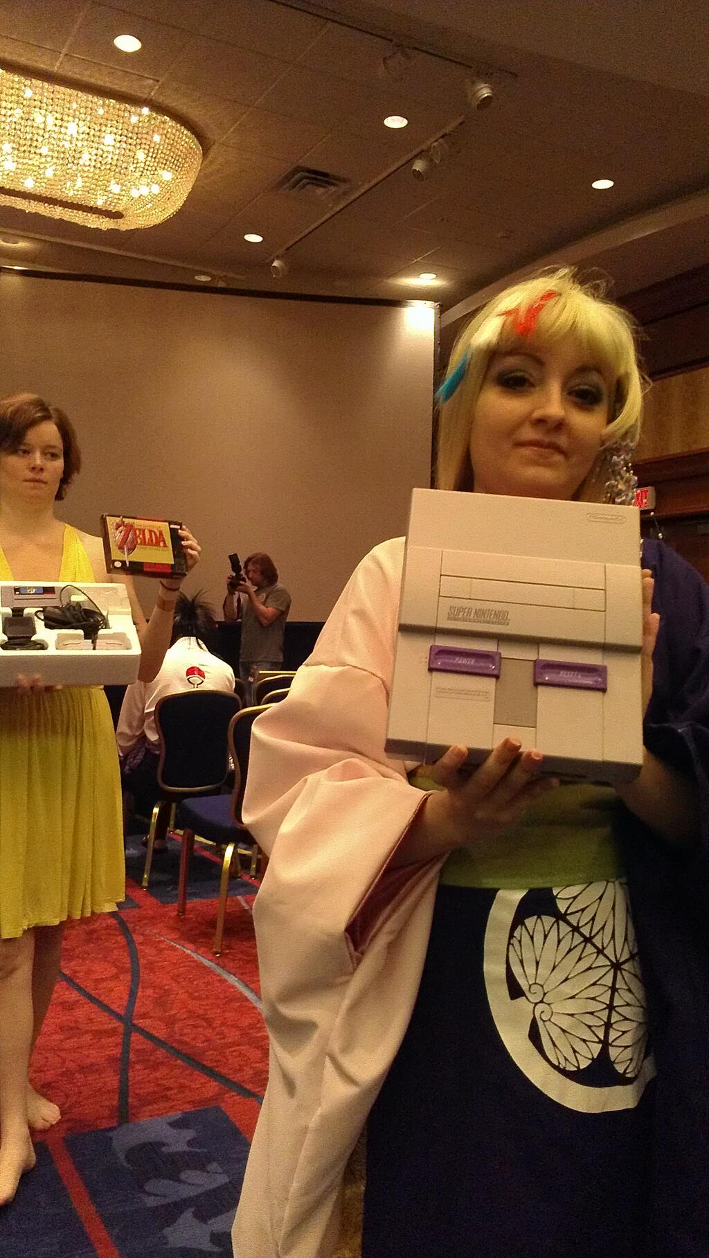 One of the showcase items was a SNES. Included in the box are controllers, a video adapter, Mario Paint, Zelda, a six month warranty and a guarantee that the system works. I believe the gentleman took that home for over the reserved price of $200.