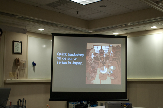 Investigating Detective Anime was done by Kate (@narutakiRT) and Al (@hisuiRT) of Reverse Thieves, who for an hour discussed about detective anime genre and how it is quite popular in Japan, but possibly marketed badly in the United States. This is a developing panel, so I am pretty sure Reverse Thieves would be putting it on again. So they introduced plenty of titles, some of which are licensed and others are not. Titles mention were: