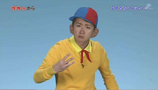 Second image is this representation from Arashi’s leader. Satoshi Ohno has recently starred in a Japanese drama that has adapted Fujiko Fujio’s Kaibutsu-kun manga and anime. Of course, what Ohno as Kaibutsu-kun said is intended for the kids in Japan. I am thinking about Blues Clues at this moment. >_<