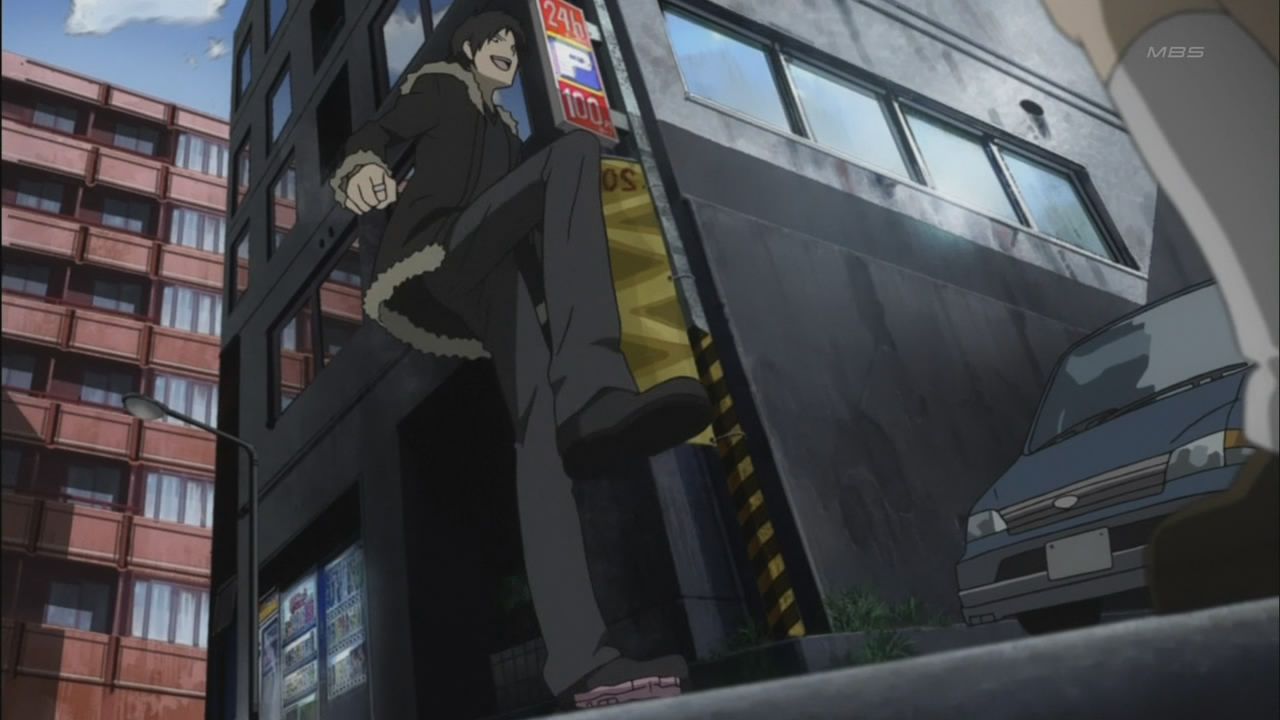 better than vending machine to the face. The Reason I gave up Baccano was that there were too many characters and the none linear story. Thank goodness Durarara has a linear story line. I know there is a beginning and I know we are moving to some good mysteries. This is the most engaging part of this story. So far we have a girl without a head, a girl who apparently as an attached head, a guy who those large objects at another guy, and I could go on and on. Because instead of falling into the crap Lost does and keep giving us mystery without answers, this show gives us tidbits of information that make us think we are gaining somewhere on the story. I am going to play my favorite game and jump to a conclusion. I think Celty (Selty) is going to find her head is that girl Seiji is with.