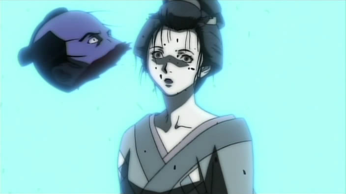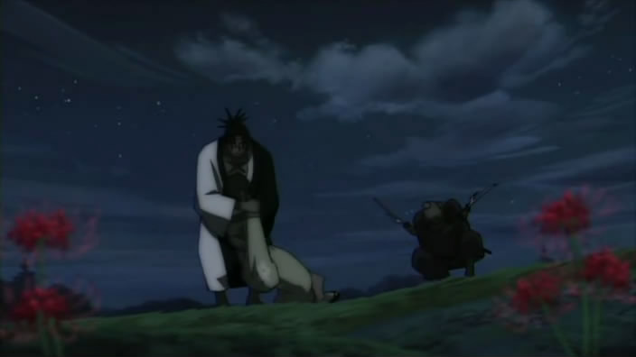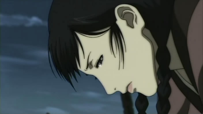 But in the samurai code, Manji must kill himself. But he refuses to follow the code. Later, we discover that even if he wants to, he can’t, because now he cannot die. So he’s destined to be an outlaw of the society, as well as human norms. He’s cursed to walk the earth like Cain, except I also remember that he can leave after he kills one thousand criminals/sinners.