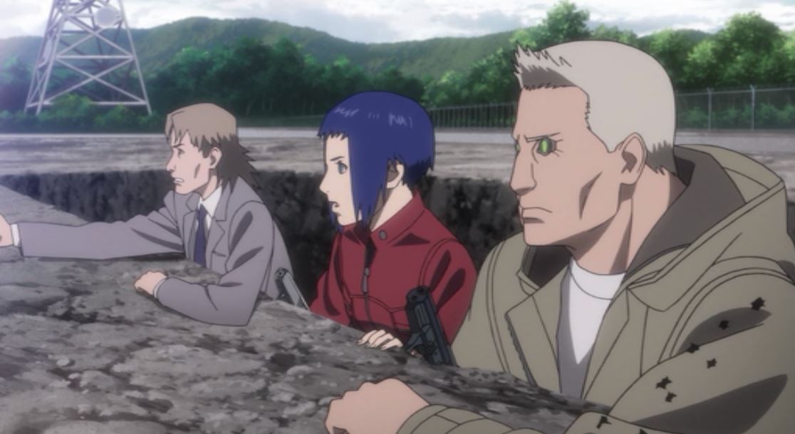 The first two “Borders” focus on getting us up to speed on these early relationships as the complex digital world post-WWIV has everyone scattered, scraping to define themselves as freelancer types with guns and gear. Aramaki, sporting not-so-gray hair as he attempts to employ Kusanagi’s expertise in hopes of understanding the truth about the military man who trained (and possibly raised) her. The allegations are looking heavy, and her isolation is well reflected in her future colleagues who tend to see her as part of the threat. In Batou’s mind, she is prime suspect in the murder of a comrade and his family, while evidence eventually points to memory tampering. Meanwhile guys like Pazu are working undercover, and not so sure who to trust anymore. Even Kusanagi’s relationship with cute, sentient multiped mecha are in limbo as she is given a LogiKoma as a bodyguard and partner! Penned by science fiction writer, Tow Ubukata, there is mind-bending fun to be had, but little in the deep surprise department. The theme hovering over these first two episodes seems to be shedding pretense in the name of simple bonds. Which feels about right for a series so largely set within the often deceptive realm as cyberspace.