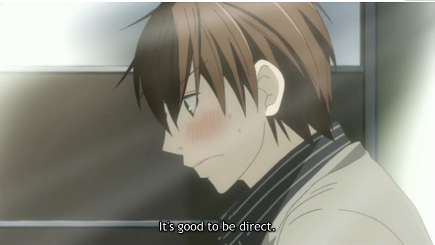 This is also the episode where Takano reveals what a confident seme he is, and that just thrills me to no end. Yes I am definitely a person that would say to people be direct. Not be reckless, but when you are confident of your choice, then confess. Relationships that you want should be seized with both hands. If you get rejected fine, but at least be understanding enough to back off.