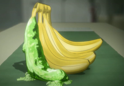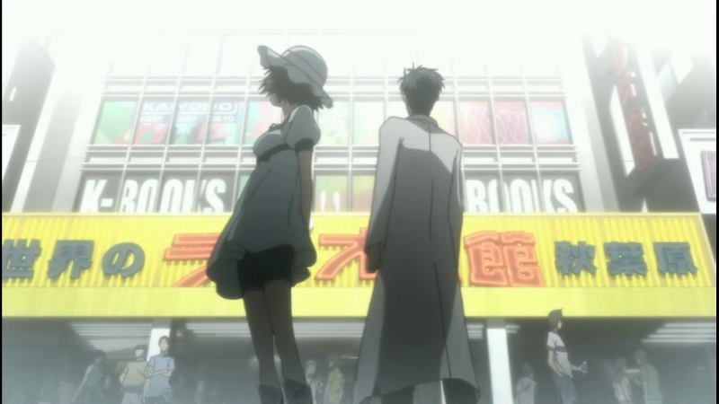 A mad scientist who really seems absolutely bonkers, Rintarō Okabe talks to seemingly nobody on his cell phone, accuses doctors at seminars of plagiarism to later be told the seminar never happened, claims everyone who gives him even a slight cross-eye glance must be an “agent,” his texts somehow end up sent to the past, comes across a woman stabbed to death who only moments ago claimed she had seen him 15 minutes prior when he had been wooing some adorable costume making cohort of his with a metal dog keychain thing and then and then OMGOODNESS HE MICROWAVES BANANAS AND MAKES THE CUTE GIRL EAT THEM THIS GUY IS TOTALLY INSANE!!!!111!!!