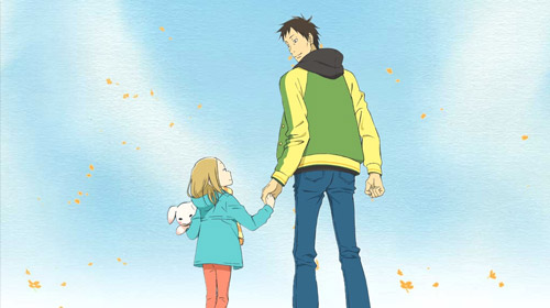 As summer came in, so did some great surprises in the form of a most unusual family drama, and the return of a long-missing master with a whopper to tell. Upon first hearing that the popular manga by Yumi Unita was to become a tv series, worry began to fill my heart, and not only for obvious reasons. Could a story this laid-back, and in the moment work even for a noItamina series? It’s great to be proven wrong sometimes, and Usagi Drop remains a heartfelt and often truthfully sweet testiment to the changing face of family. Featuring the second awkward dad this year (the first being Kotetsu T. Kaburagi of Tiger & Bunny, of course) to have not only a great handful to deal with, but also an unerring wish to be the best dad he can. He may not be the sharpest crayola in the box, but he’s doing his damndest. And it’s great to watch him try. It’s extremely rare to see such sincerity at work in anime, and the show’s 11 episodes often shine brightly because of it.