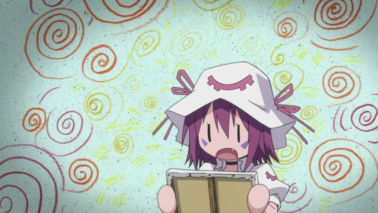 See that screenshot that is nothing but an unfinished sketch? It is one of many. There is no effort being made to hide the low budget there. You may dislike Madoka, as I remember from your comment on Ray’s Madoka post, but at least they tried to hide any budget issues and turn the show into an artistic effort. To me, that shows a great deal more professionalism. I can’t agree with your suggestion that Merry looks OK on average, in the sense that when you average a bunch of marks in the 80s with a bunch of zeroes, the zeroes drag everything down and the result is no longer a passing score.