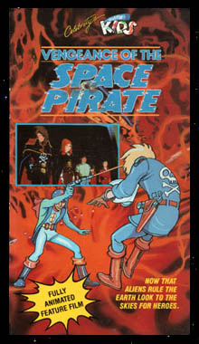 The first in this series of releases that had us doubling over was their version of the Captain Harlock origin feature, Arcadia Of My Youth(1982). Recut and dubbed, the film was repackaged as Vengeance Of The Space Pirate. Now as I had been accustomed to the tales of Harlock via friends & tapes of the tv show long ago, it was pretty clear kids were getting a huge dose of false advertising.(Not to mentin the kind of violence on the cover that would never fly in this day and age. Han Solo this! ) Missing roughly forty minutes of its epic running time, the film whisks by at a Cliff’s Notes clip, and features some oddball, yet competent (for its time) dubbing. If one can survive the stilted dialogue delivery, they may not be able to contain themselves as the newly liberated space cruiser Arcadia leaves a locked down Earth to a song only the worst Barry Manilow-lover would go nuts for. We’re on the verge of a crucial, emotionally fulfilling sequence, and all we get is theme music best fitting of a 2:30 in the morning Vegas show after a sixteen hour sucker’s streak at the tables. (If I could share this monstrosity with you via a video –Someone get on this. This pain must be shared!) Even as the cut is somewhat tolerable(albeit a little too literal at points), the film is missing so much of what makes ‘s film such a vital piece of Leiji Matsumoto history.